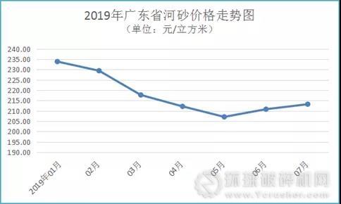 放眼廣東省砂石市場,日前,砂石骨料網(wǎng)從廣東省發(fā)改委價格監(jiān)測中心了解到, 受多地砂石場環(huán)保整治、市場供需不平衡以及物流運(yùn)輸費(fèi)用較高等因素影響,2019年7月廣東省河砂和海砂價格持續(xù)回升,碎石價格維持漲勢。
