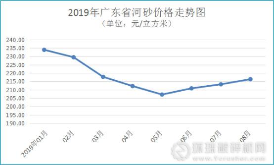廣東省河砂價格連續3個月上漲,8月均價216元/方