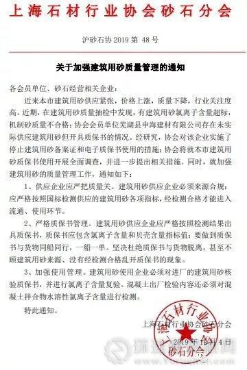 上海砂石協(xié)會發(fā)布《關(guān)于加強建筑用砂質(zhì)量管理的通知》